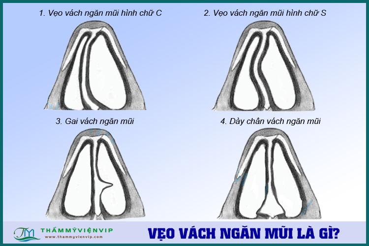 Có rất nhiều dạng vẹo vách ngăn mũi như sau: