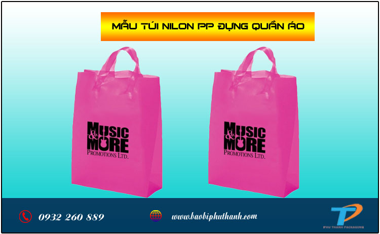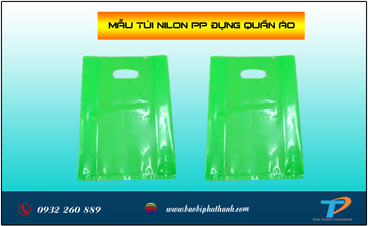 Túi nilon PP là loại túi ni lông được sản xuất từ hạt Polypropylene. Túi PP trong, có độ dai tốt có thể sản xuất các kích thước và mẫu mã khác nhau tùy theo nhu cầu của người dùng. Túi PP không độc hại, tồn tại trong tự nhiên với thời gian ngắn hơn túi PE.